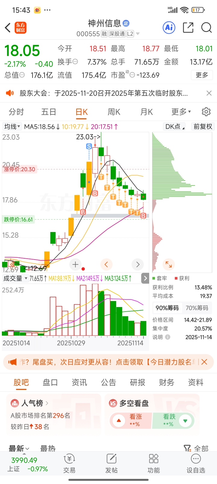 $神州信息(SZ000555)$ 我你嘛,我人麻了