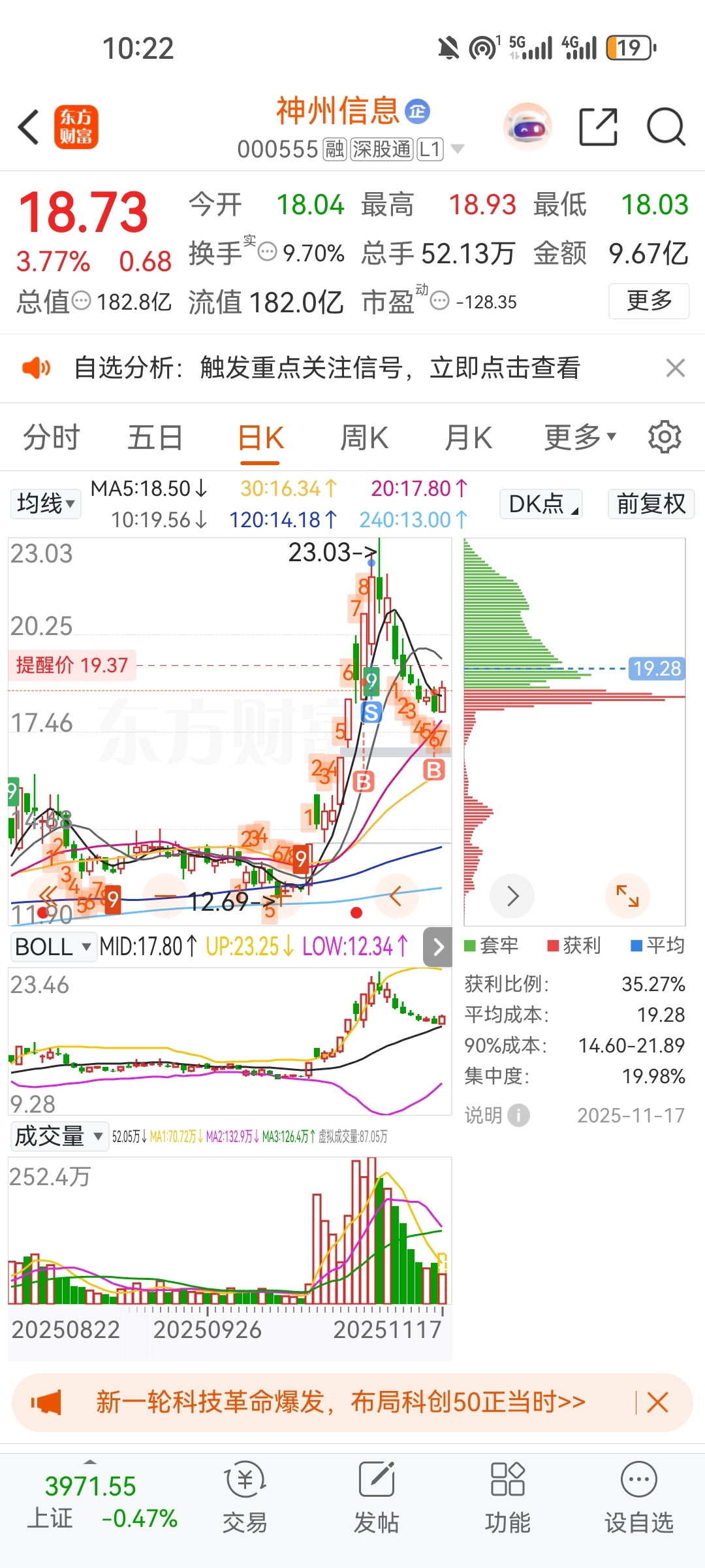 $神州信息(SZ000555)$ 今日资金已经明显介入,接下来迎接反弹行情,准备吃反弹小肉,目标反弹价位19.80-20.30#强势机会#