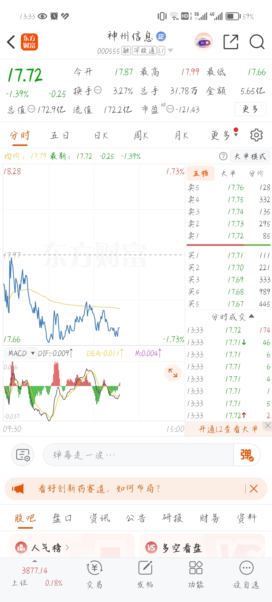 $神州信息(SZ000555)$ 17.77!今日收盘