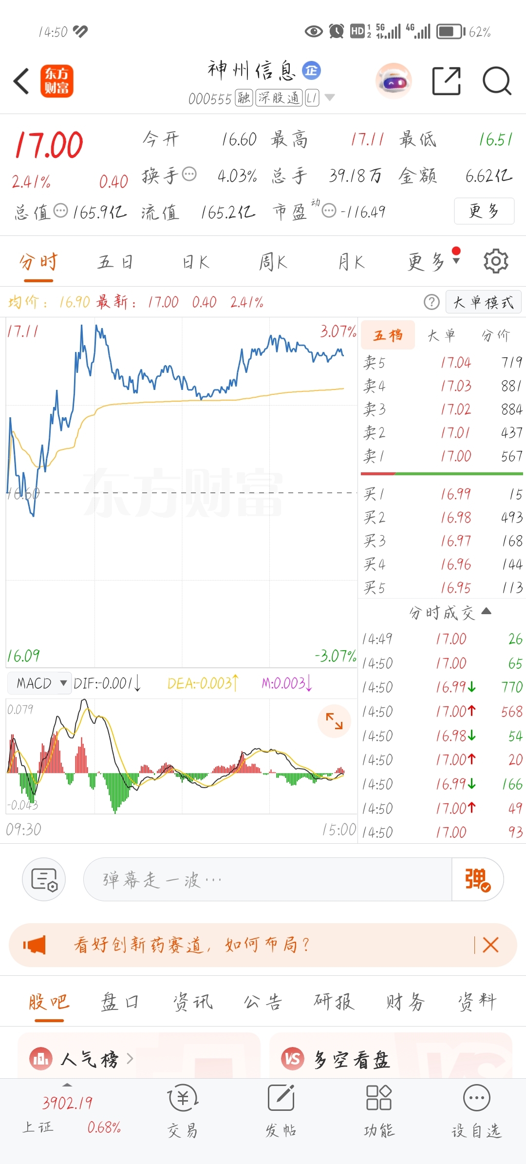 $神州信息(SZ000555)$ 一定要站上17啊!