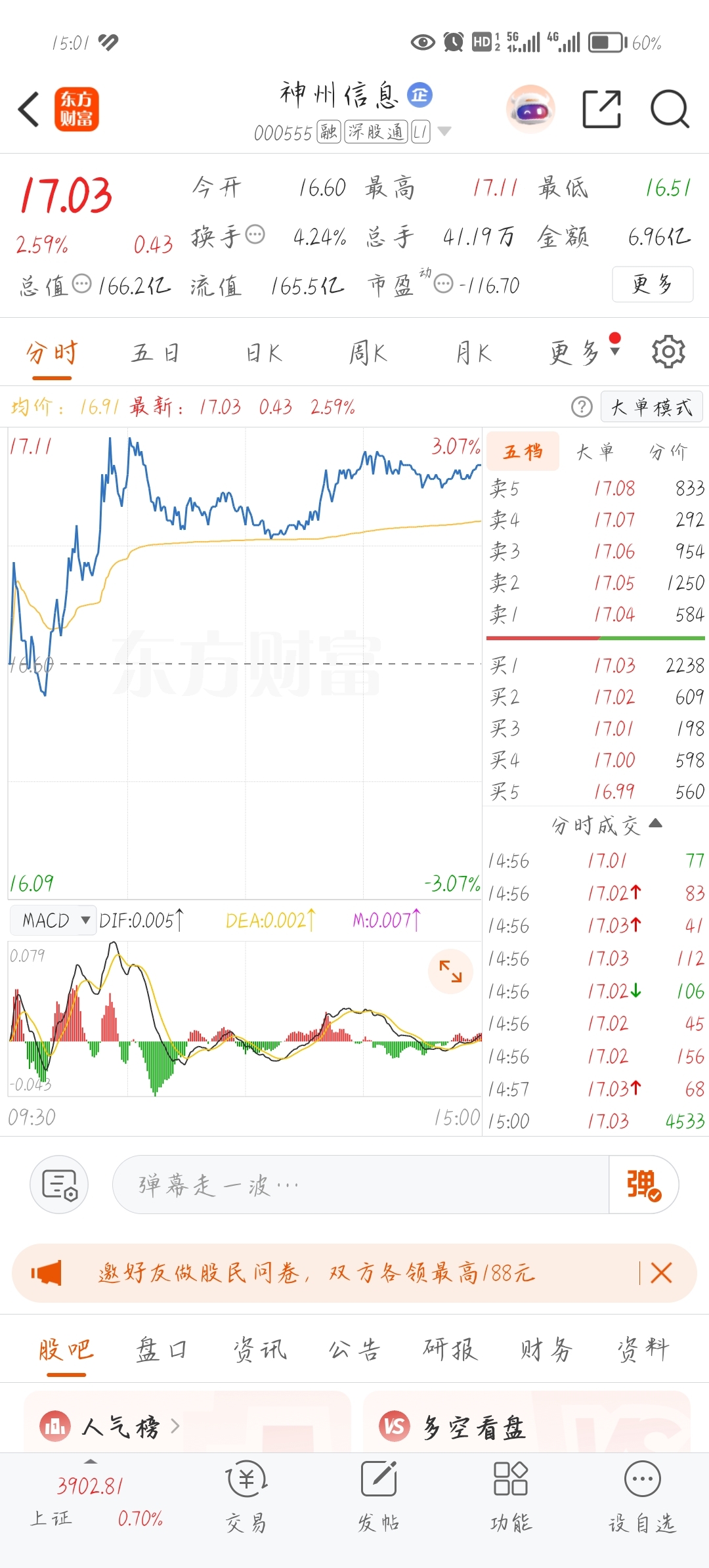 $神州信息(SZ000555)$ 谢谢主力,在我今天生日这一天,送我蛋糕,还请我全家去外面搓一顿!非常感谢!高兴一天是一天!只说眼前,不说以后!今天对我好,我就说你好!