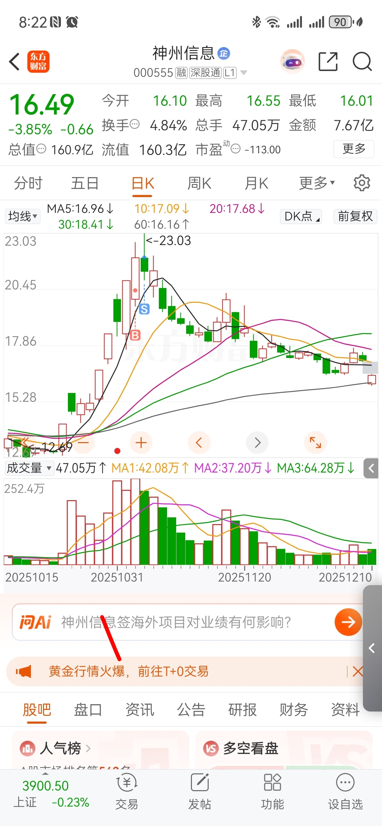 $神州信息(SZ000555)$ 逃顶了一把