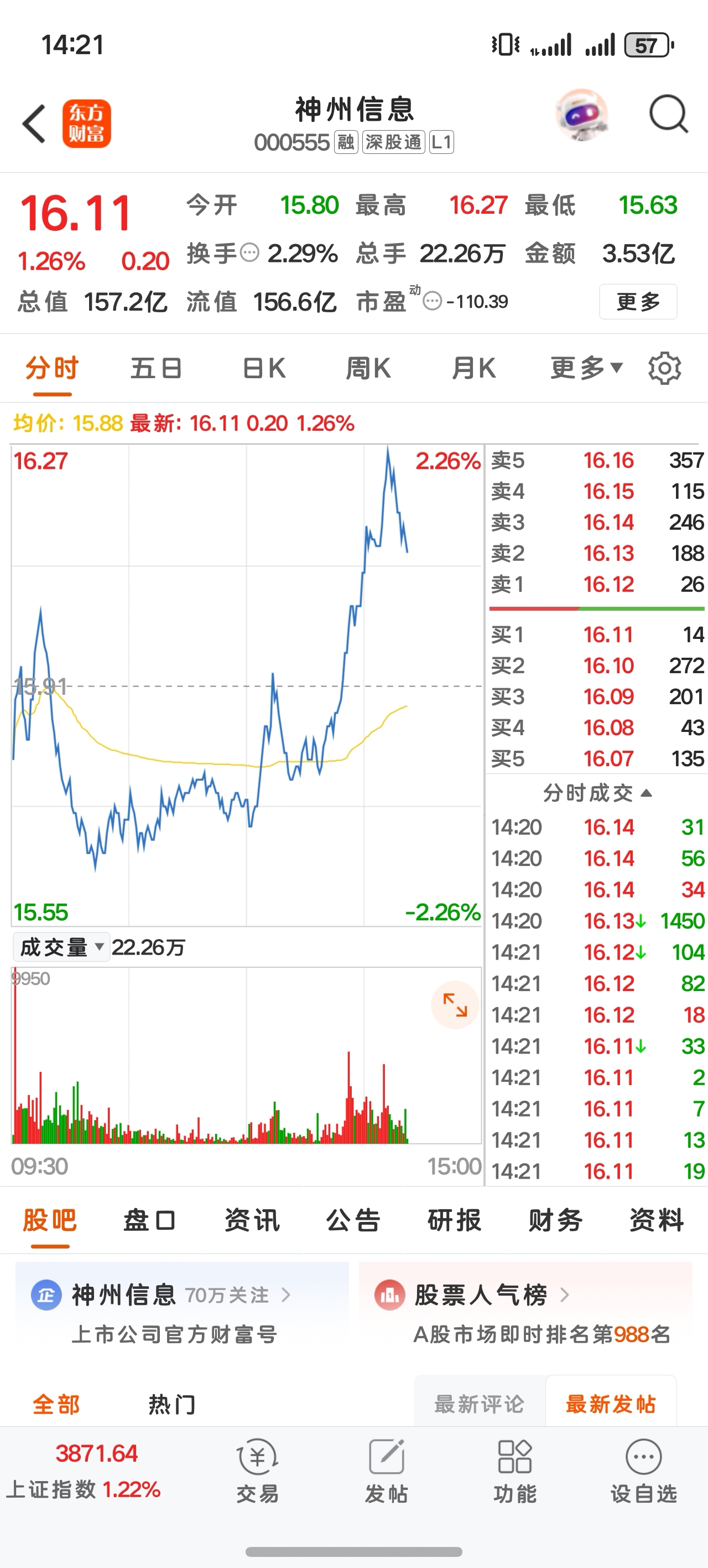 $神州信息(SZ000555)$ 今日,能否守住16?