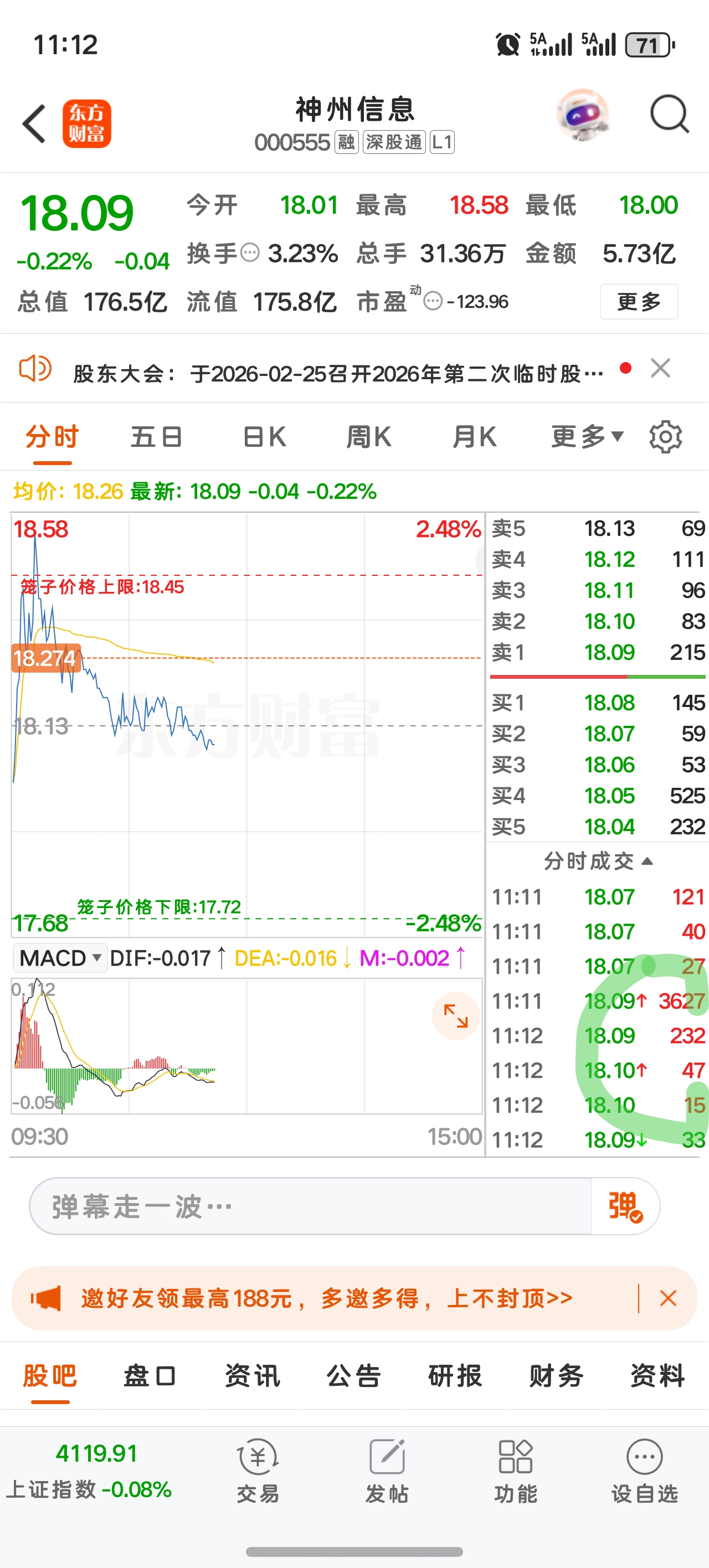 $神州信息(SZ000555)$ 3600手进去,水花都没有?