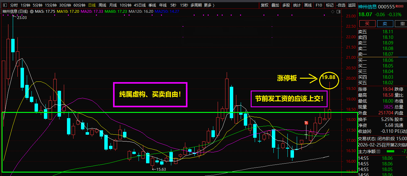 本大师:盘后经过上万遍的推演,定性神州触摸涨停板19.88
