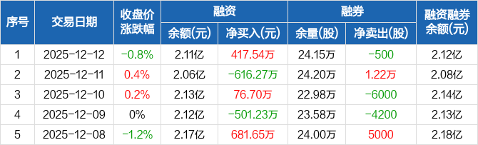 西部创业:融资净买入417.54万元,融资余额2.11亿元(12-12)