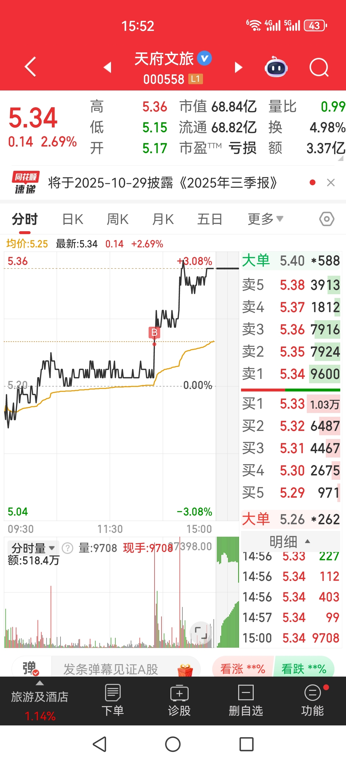 $天府文旅(SZ000558)$ 我进来了 明天赚点就跑