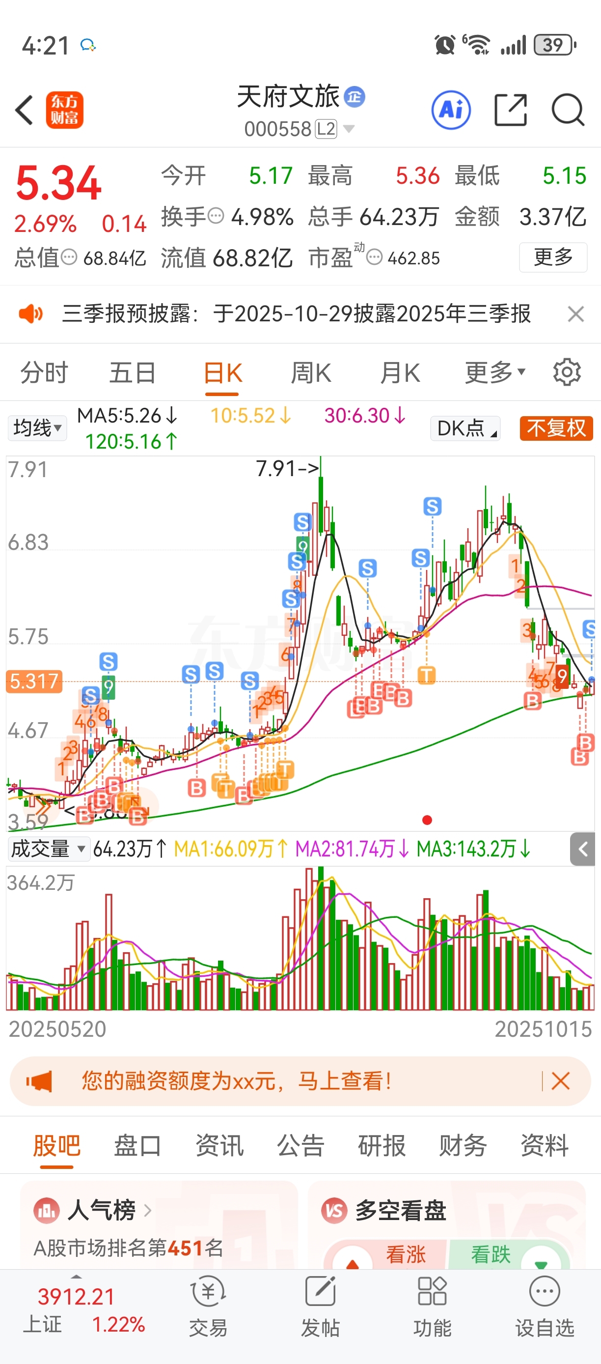 $天府文旅(SZ000558)$ 每次建仓都吃不到多少就卖完了。。。