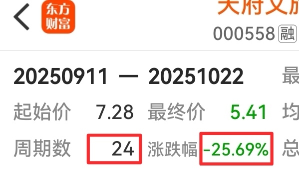 连续24个交易日,调整了25.69%超过一个月了!天府还没有止跌迹象!!
