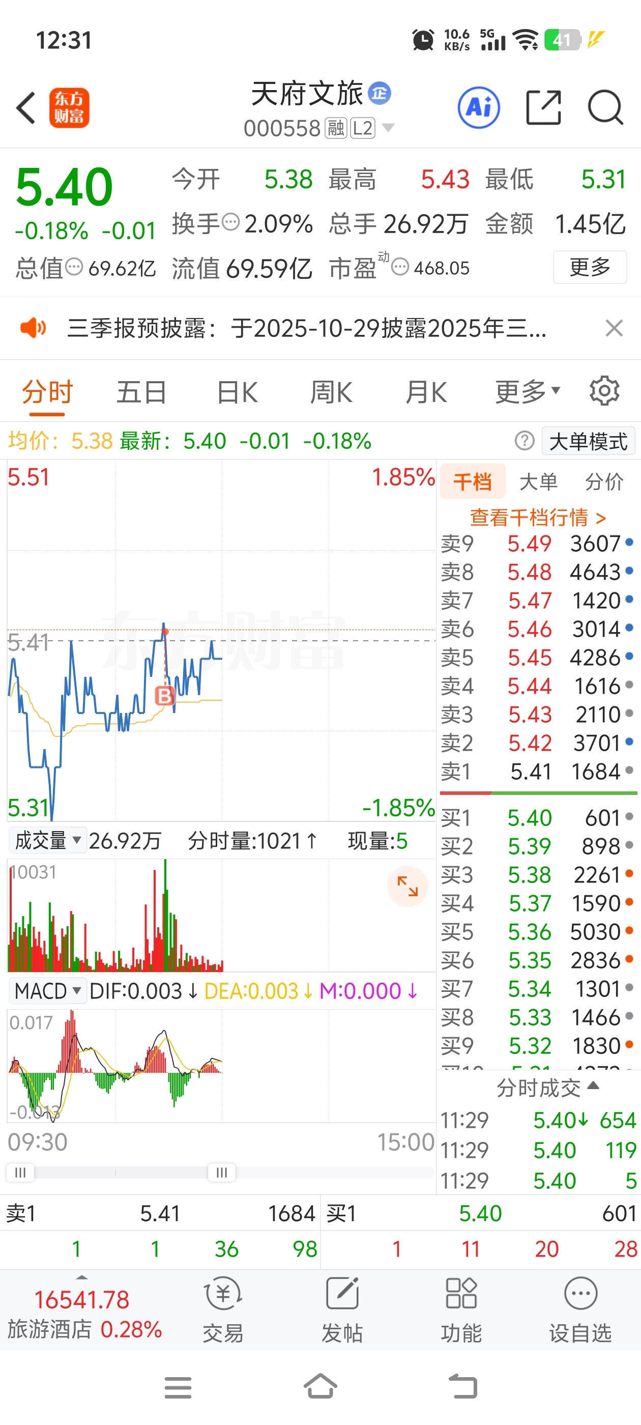 $天府文旅(SZ000558)$ 平盘又加了仓位,差不多满仓了,老庄下午加油啊!