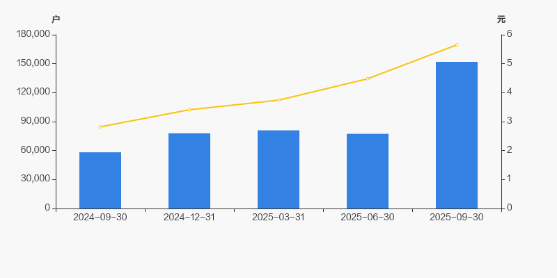 2024年9月30日至今,公司股东户数成倍增长,区间涨幅达160.96%。2024年9月30日至2025年9月30日区间股价上涨100.35%。
