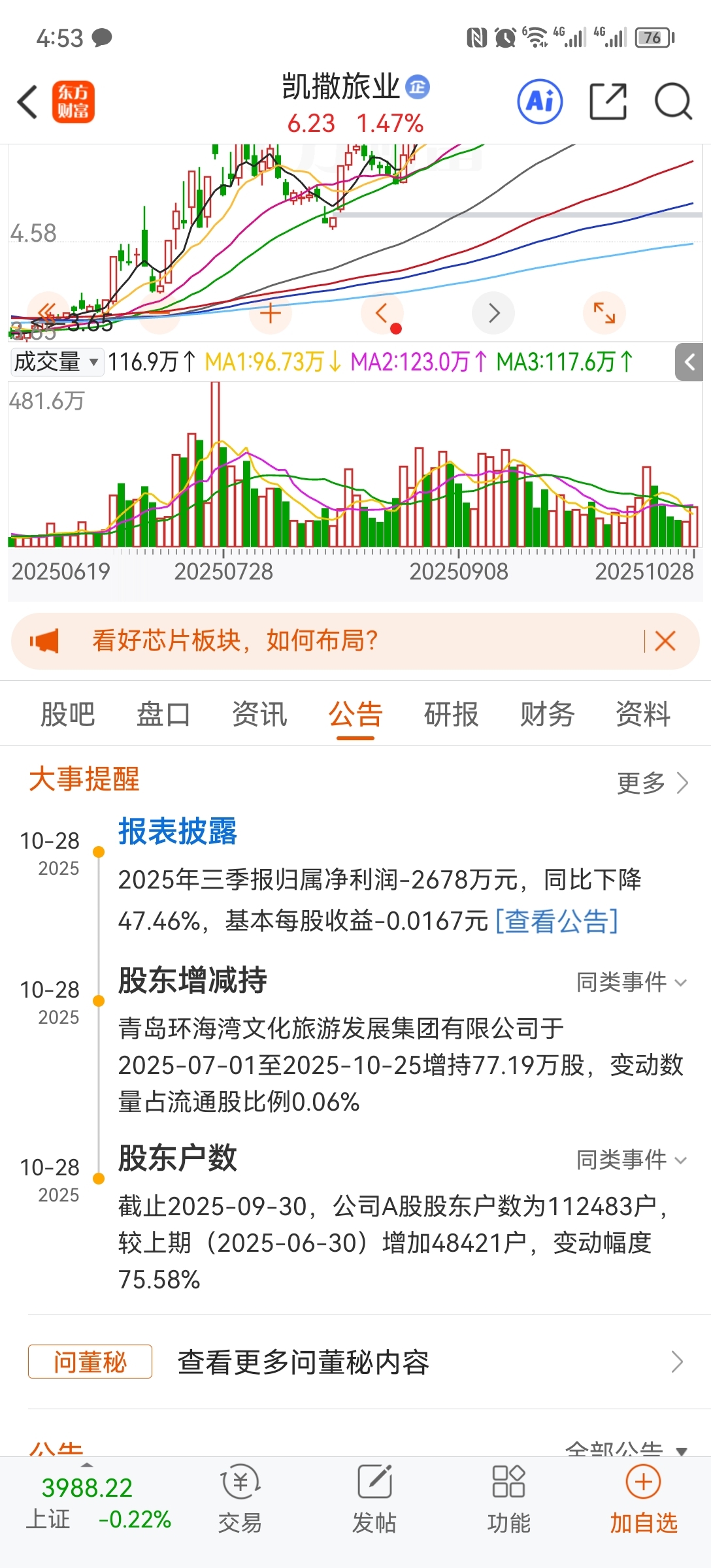 凯撒昨晚披露亏损,今天也没跌呀。不用太担心