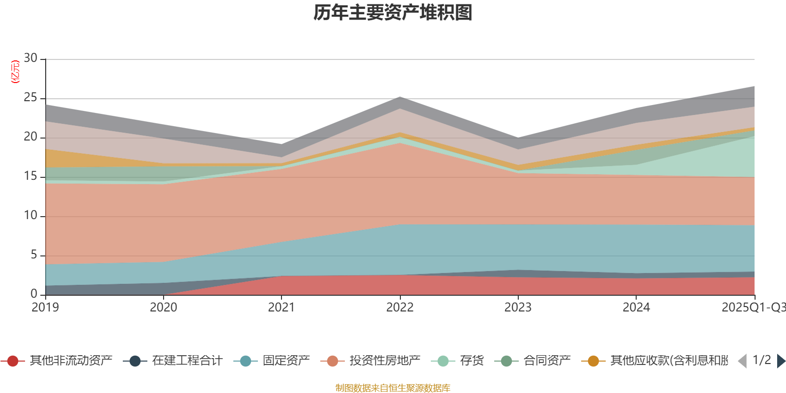 资产重大变化方面,截至2025年三季度末,公司存货较上年末增加298.72%,占公司总资产比重上升14.11个百分点;合同资产较上年末减少61.23%,占公司总资产比重下降5.17个百分点;固定资产较上年末减少4.61%,占公司总资产比重下降3.82个百分点;投资性房地产较上年末减少3.02%,占公司总资产比重下降3.52个百分点。