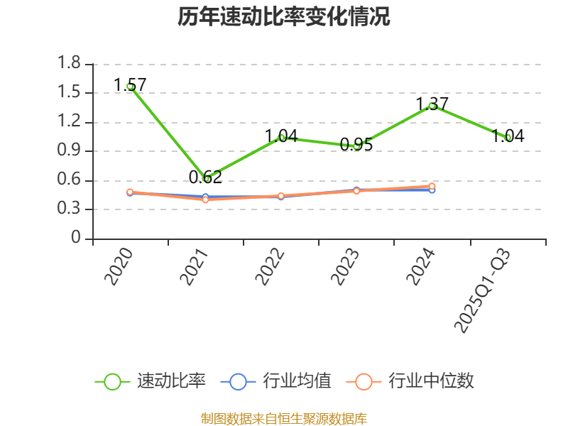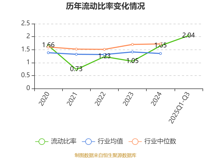 2025年前三季度,公司流动比率为2.04,速动比率为1.04。