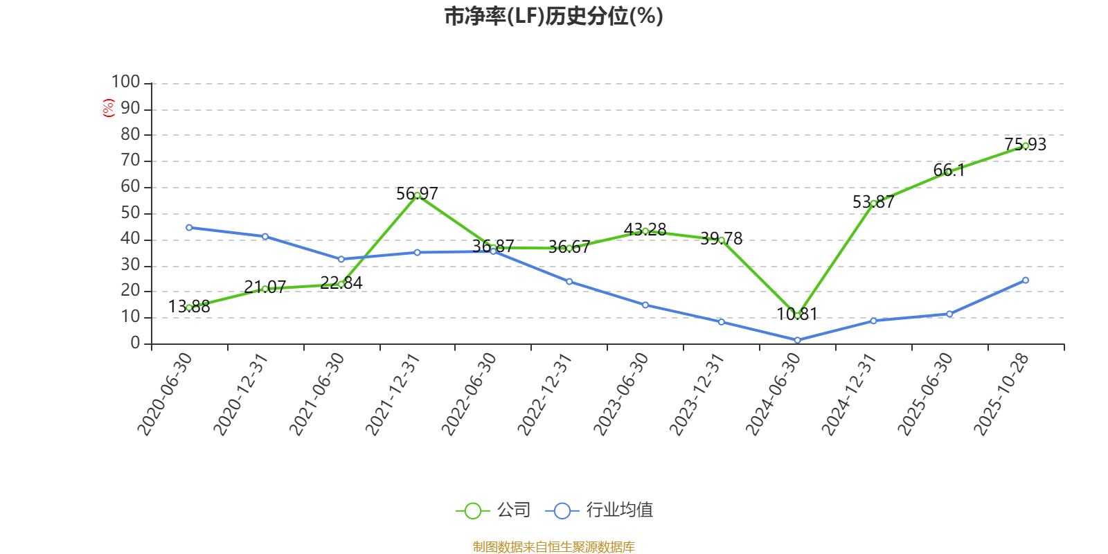 市盈率、市净率为负时,不显示当期分位数,会导致折线图中断。