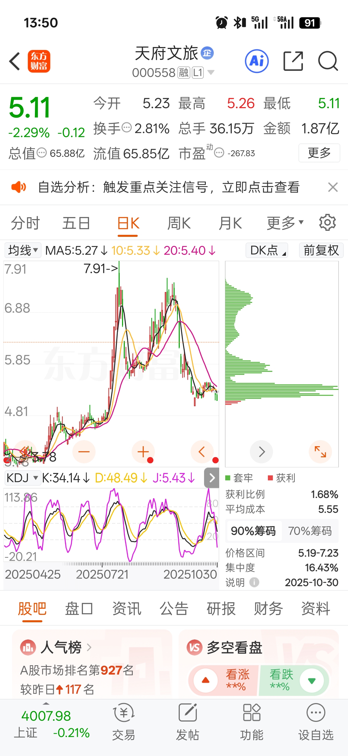 $天府文旅(SZ000558)$ 套的人不少,主力有没有亏钱自己知道,不甘心的就长期拿着,有钱就补仓做T