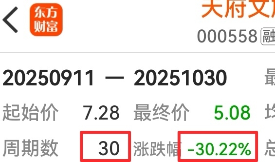 今天,总算忍不住,先跑了30个交易日,跌了30.22%真的太狠了!等跌到4块,再