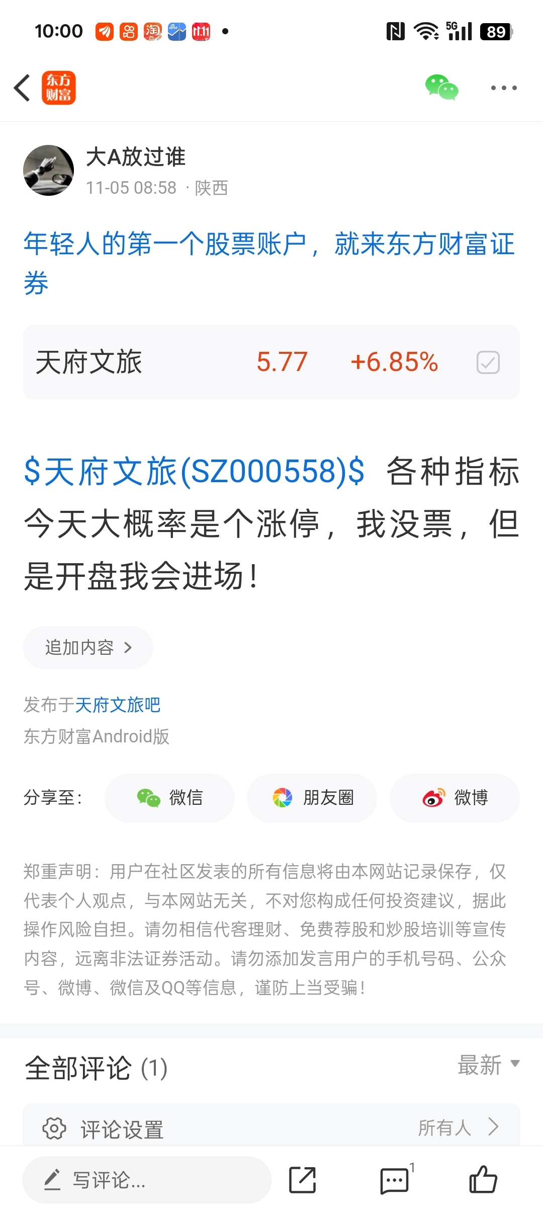 温馨提示: 1.根据《证券法》规定,禁止编造、传播虚假信息或者误导性信息,扰乱证券市场;2.用户在本社区发表的所有资料、言论等仅代表个人观点,与本网站立场无关,不对您构成任何投资建议。用户应基于自己的独立判断,自行决定证券投资并承担相应风险。《东方财富社区管理规定》