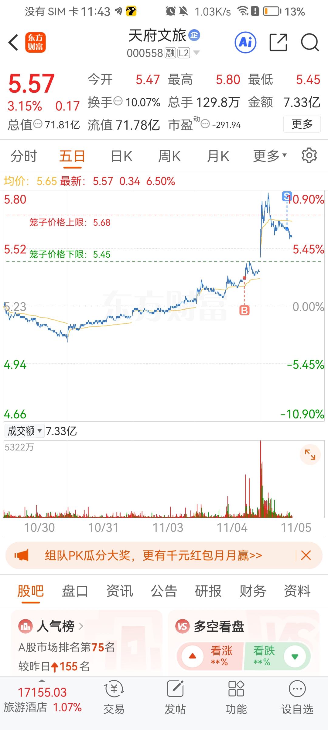 $天府文旅(SZ000558)$ 赚点买菜钱跑路,希望不是卖飞了