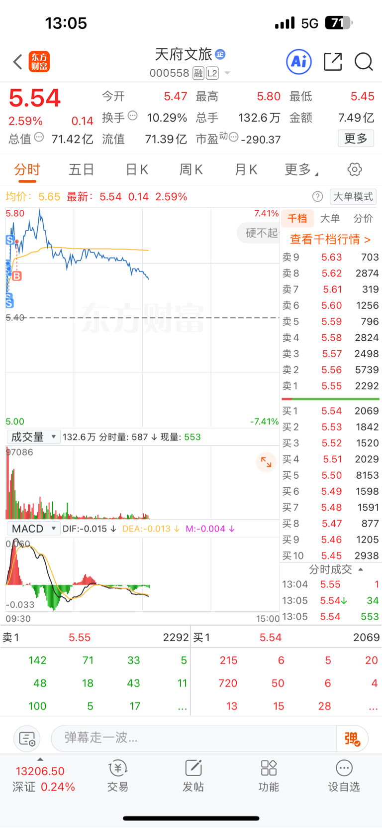 $天府文旅(SZ000558)$ 今天的量还是可以的,再等两天准备重新建仓,昨天清完了
