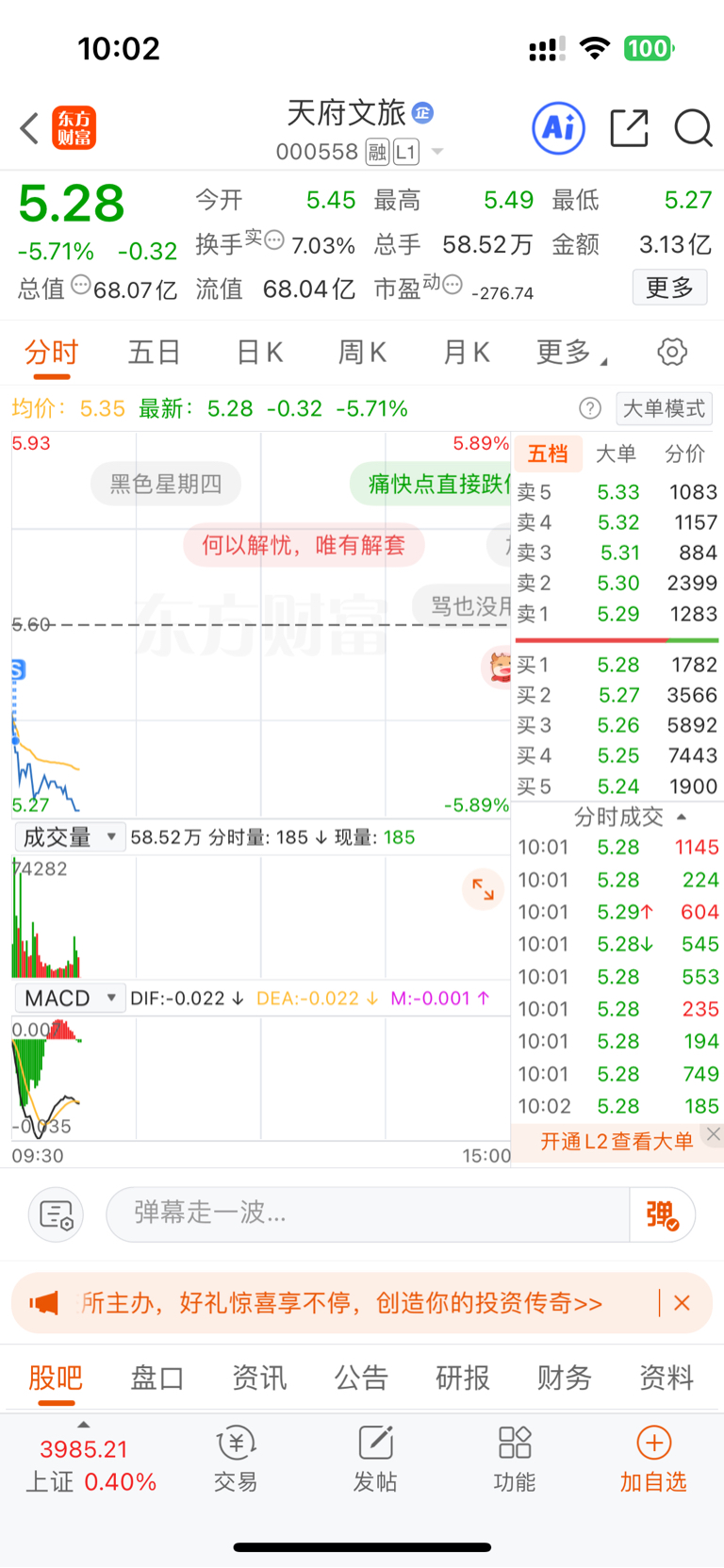 $天府文旅(SZ000558)$ 看上我这三瓜两枣,怪我不了解这股,感受到巴蜀热情拿走不谢