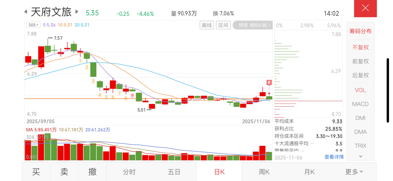 $天府文旅(SZ000558)$ 第一次买,给我拉到水上就可以了。