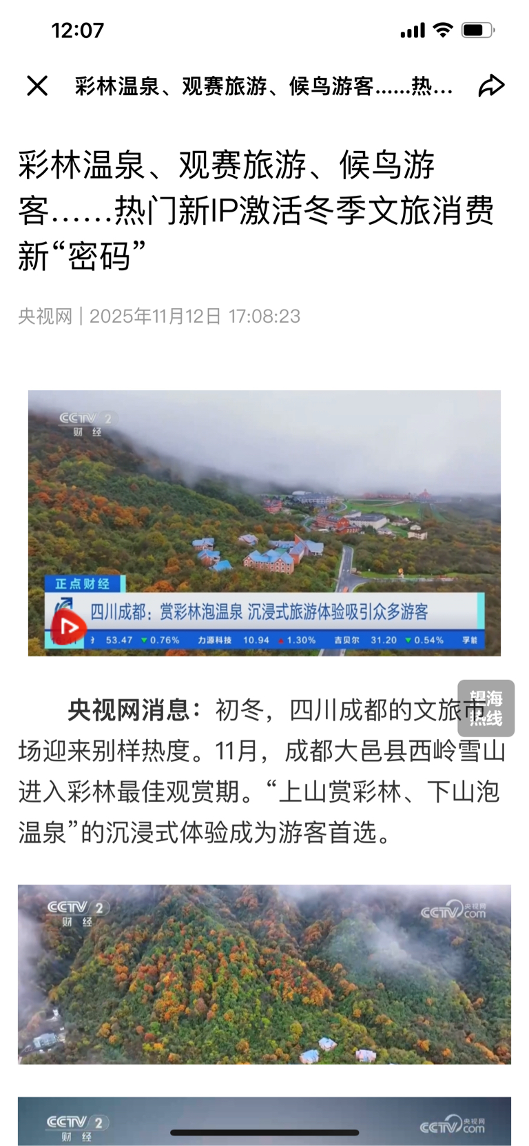 央视报道了西岭雪山!成都发布报道游客翻3倍!等长雪季来临,游客更多!