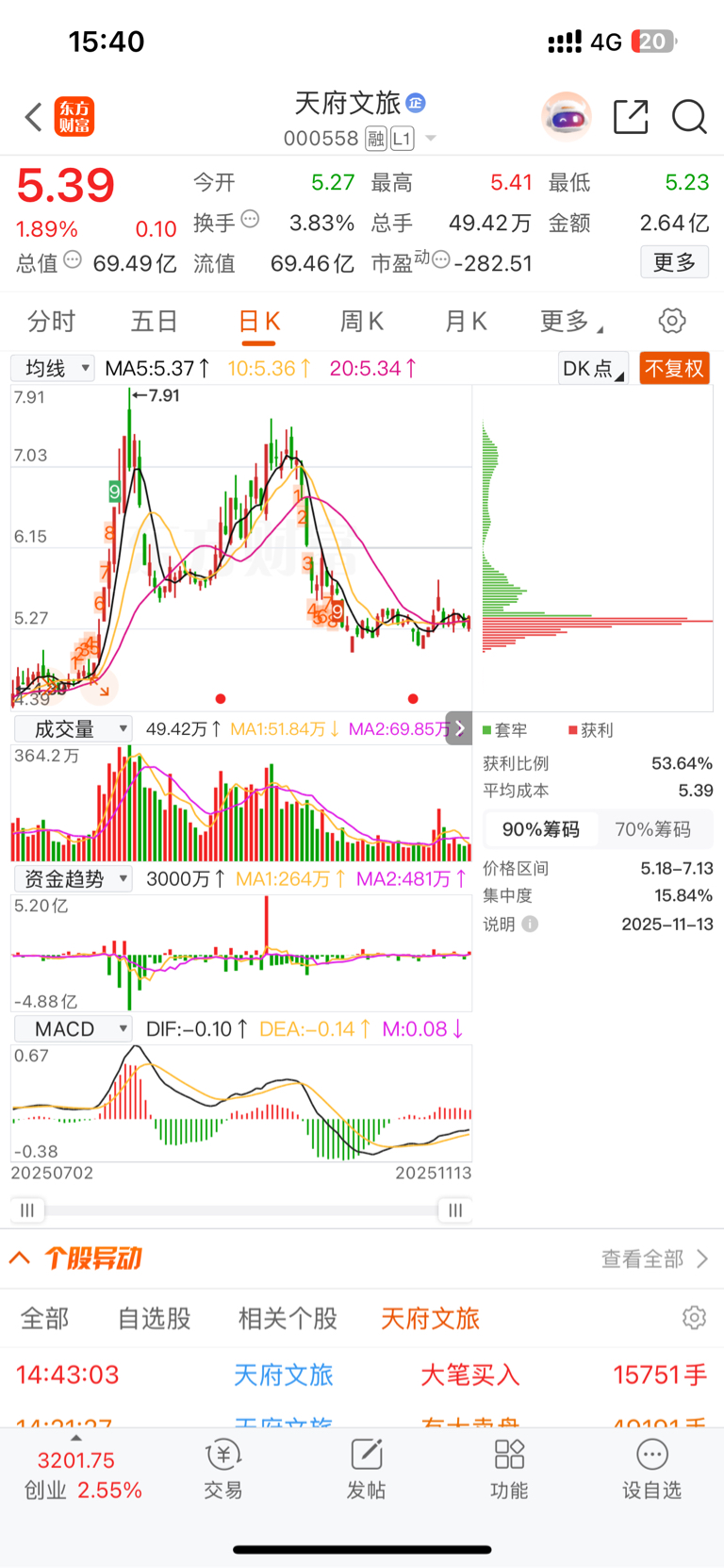$天府文旅(SZ000558)$ 筹码庄家己经卖给散户了,希望大家看懂 。 上方没多少筹码明天冲5.86 。 下周7元见