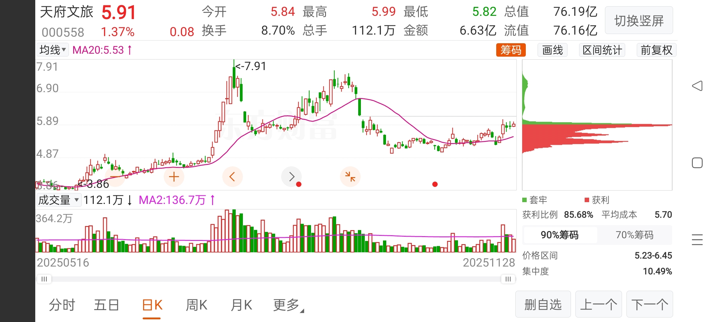 $天府文旅(SZ000558)$ 自己看看筹码分布 上面一点压力没 大家不要卖等第三天冲高