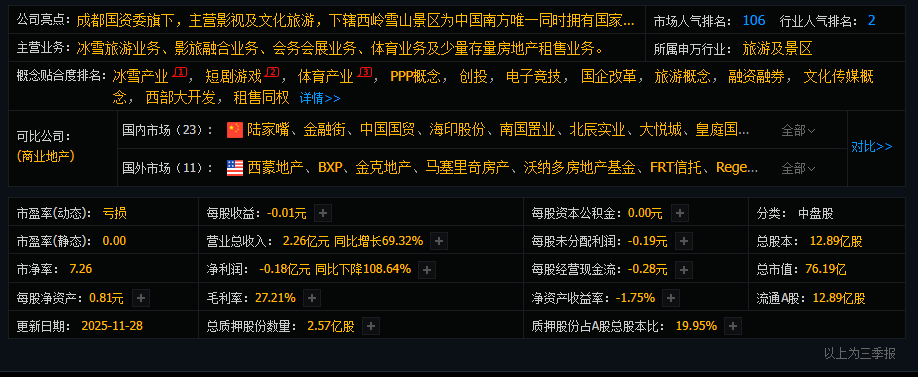 $天府文旅(SZ000558)$ $西域旅游(SZ300859)$ $长白山(SH603099)$ $大连圣亚(SH600593)$