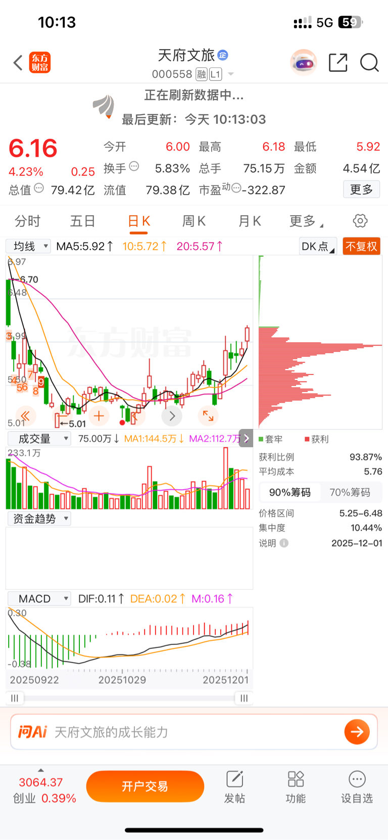 $天府文旅(SZ000558)$ 6.16%%%%上面没有筹码,,,你目标多少????下雪,。。想在12月15前,卖了还钱庄的钱,,,9.33想想
