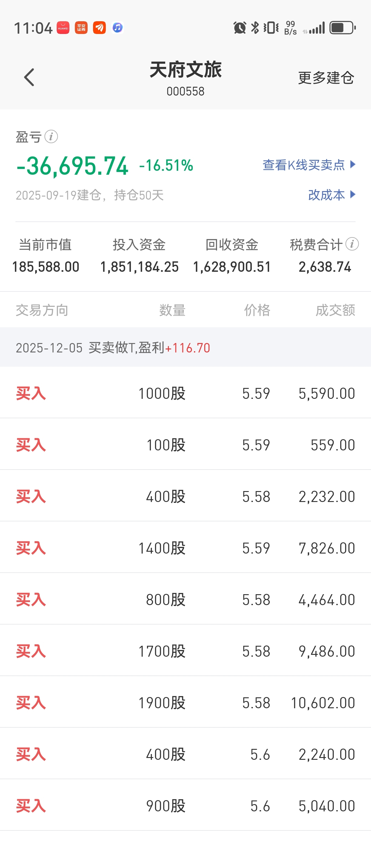 $天府文旅(SZ000558)$ 我5.58买不进去,非要5.59。有毛病吧!再下来点,我现在大把仓位了。