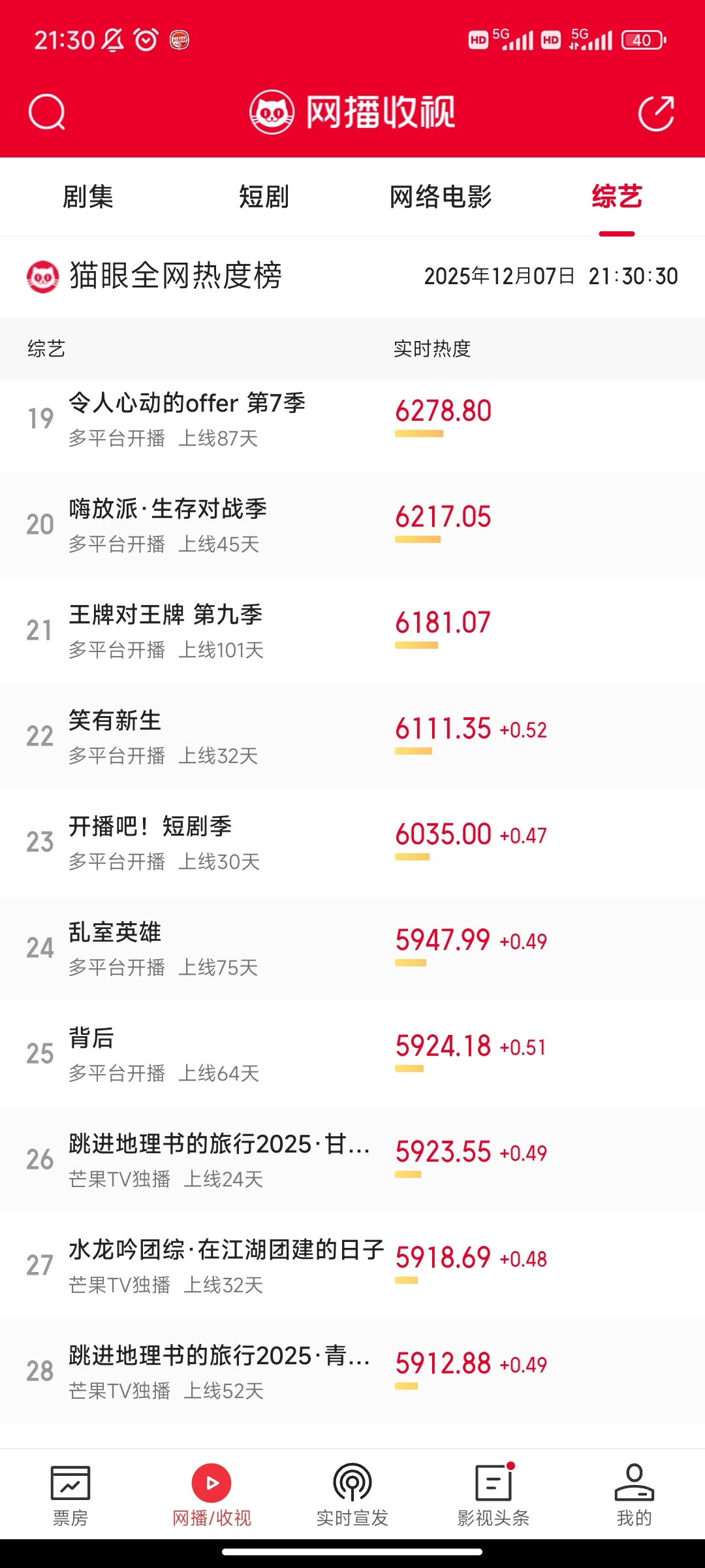 $天府文旅(SZ000558)$ 综艺热榜前30,天府4个全上榜,以赵斌为首的影视团队很有实力啊