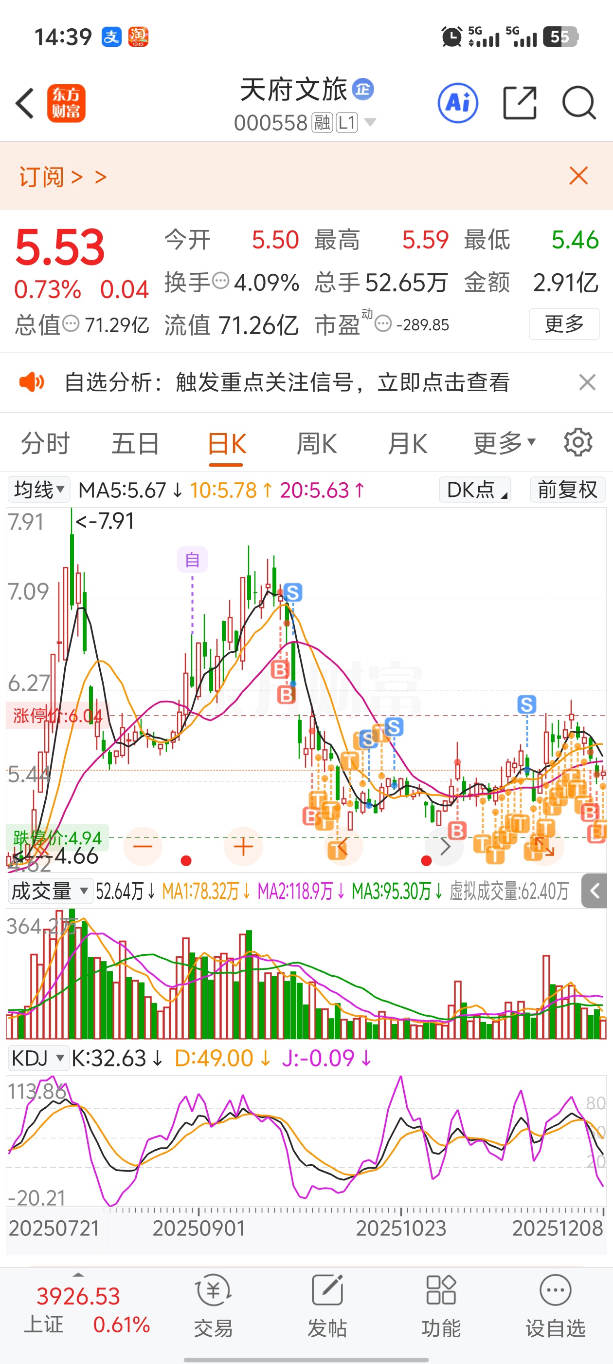 $天府文旅(SZ000558)$ 拿了几个月了,一直亏,今天卖了大部分仓位,切换到福建板块了,天府实在是没法拿了,留个底仓