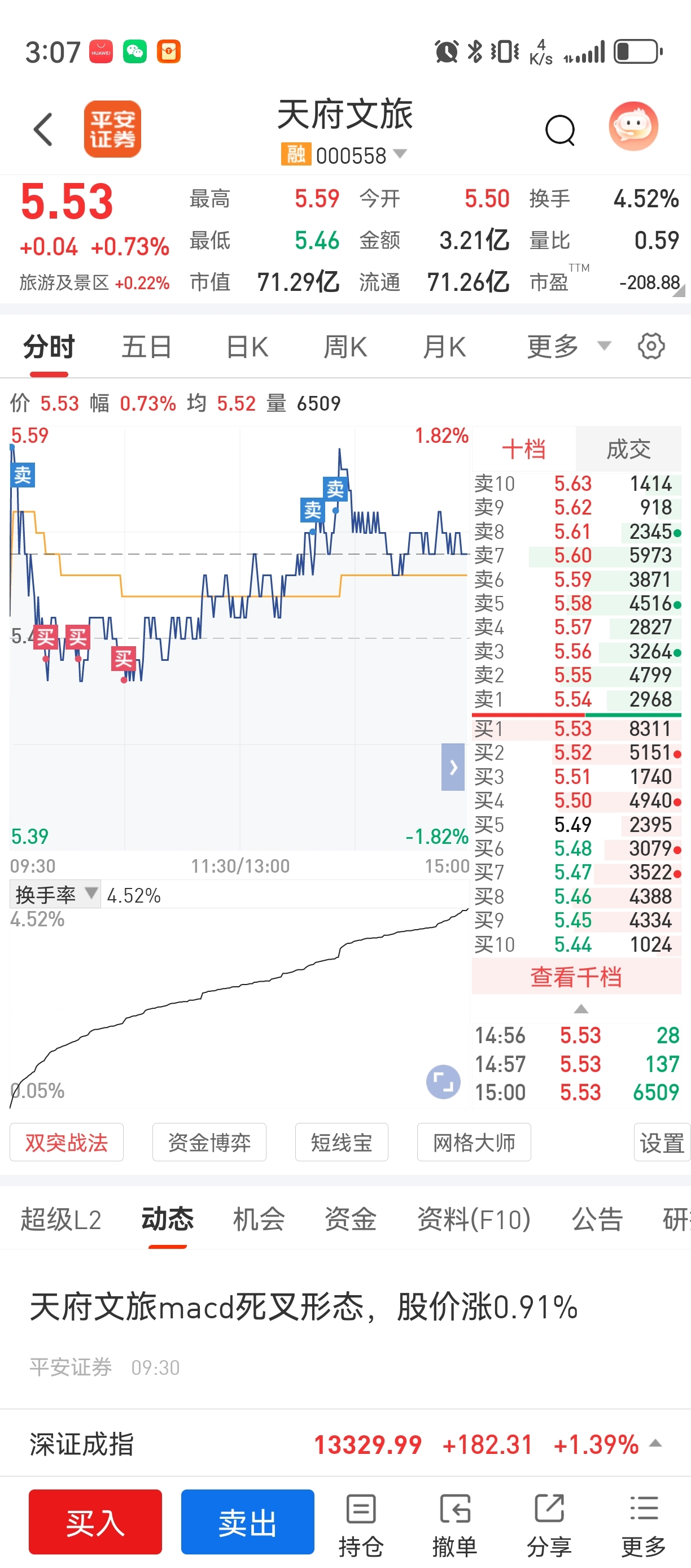 $天府文旅(SZ000558)$ 做T做上头了,明天低开多少可以进?麻烦大佬们继续指点一下。给心