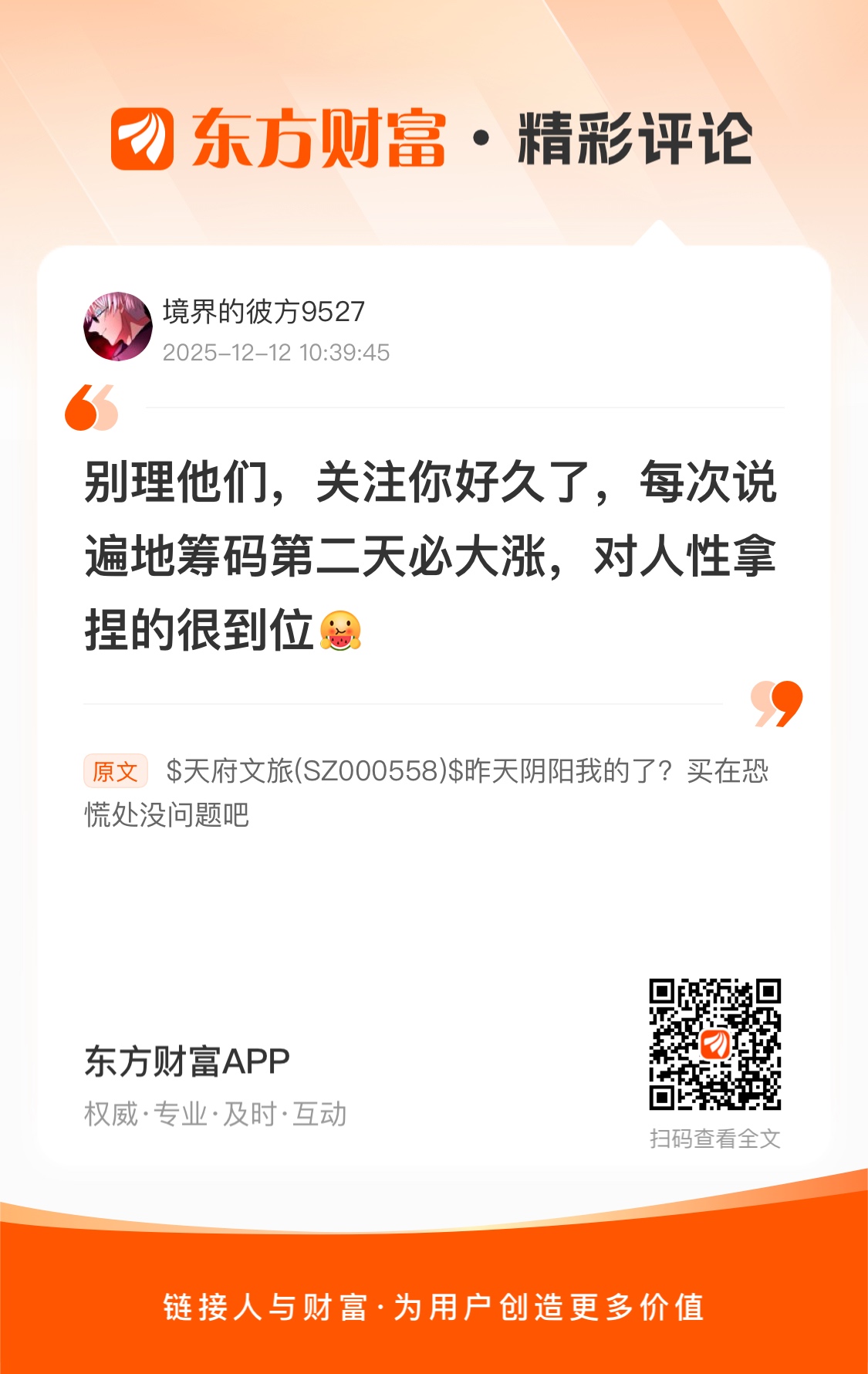 //@境界的彼方9527 : 别理他们,关注你好久了,每次说遍地筹码第二天必大涨,对人性拿捏的很到位