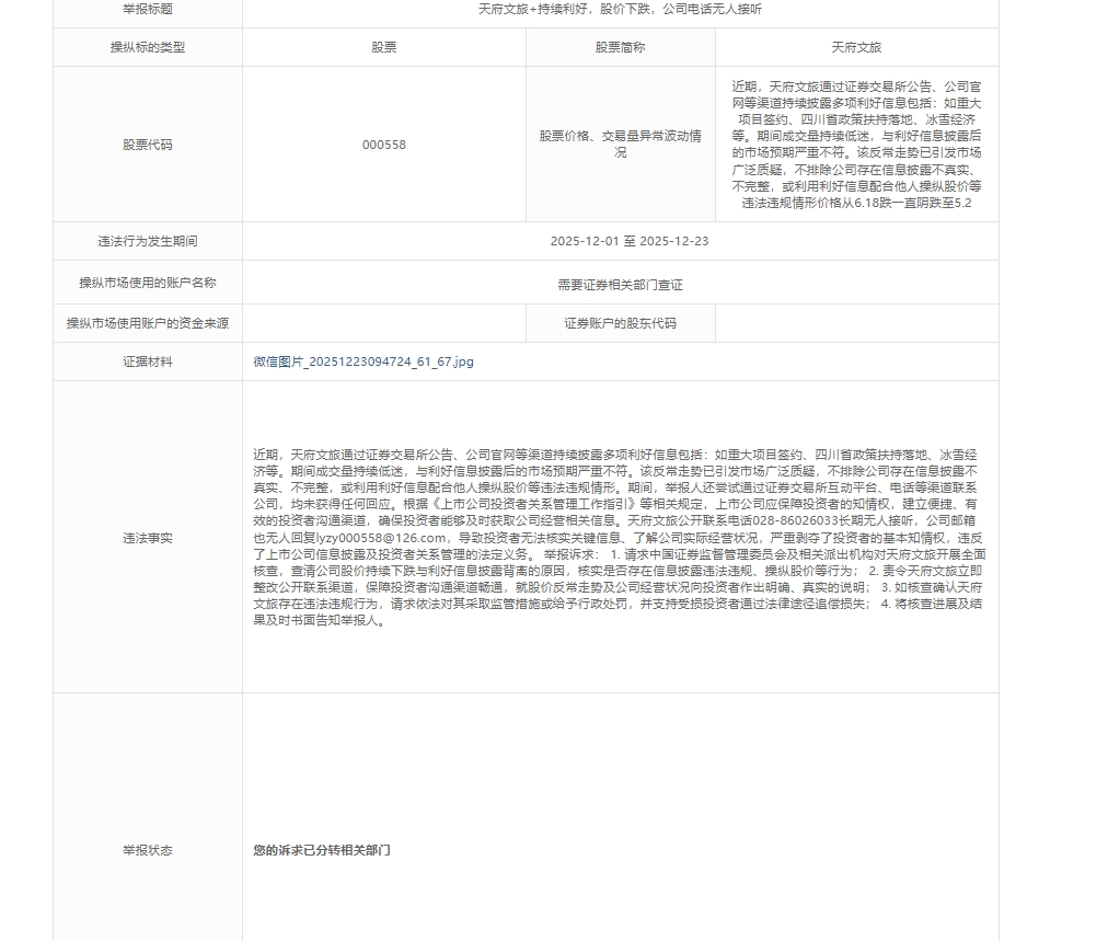 $天府文旅(SZ000558)$ 投诉已经受理,勾庄