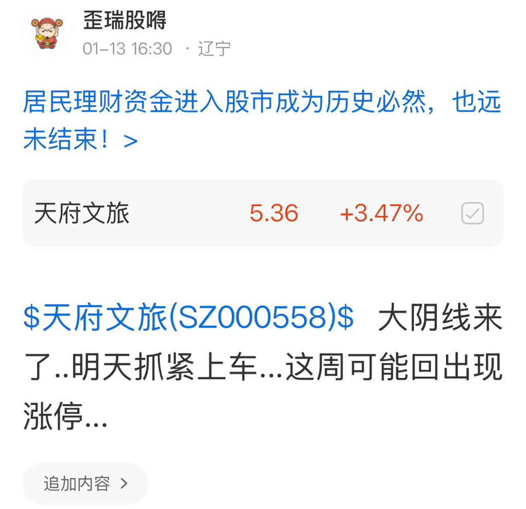 $天府文旅(SZ000558)$ 看看明天后天有没有涨停..