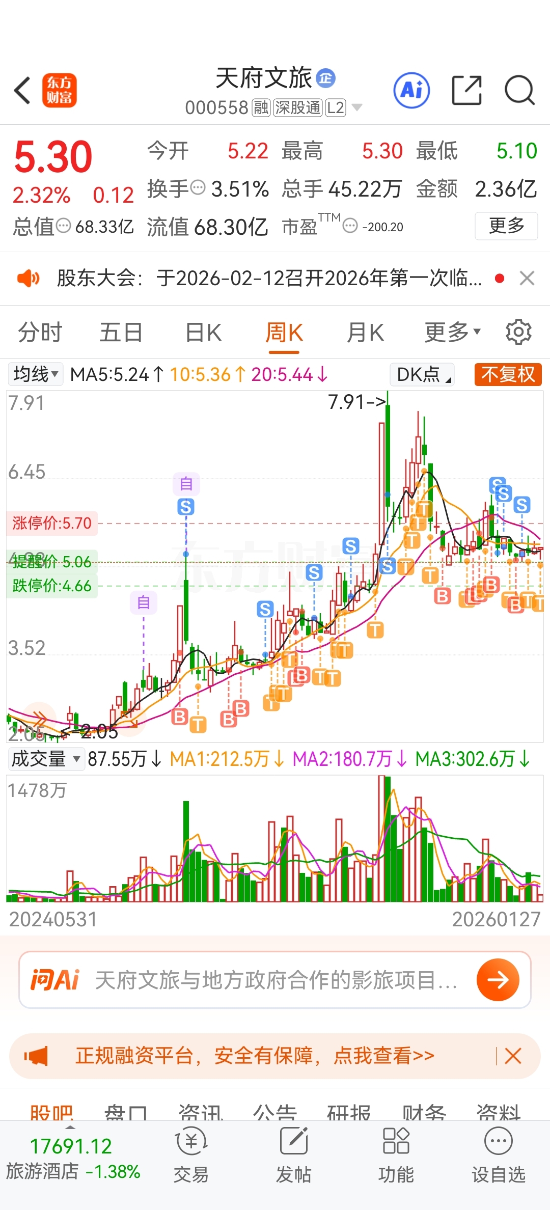 $天府文旅(SZ000558)$ 加仓干,7%以下涨跌就T,有一天7%+涨幅就拿好不动了等主升,负7%割一半
