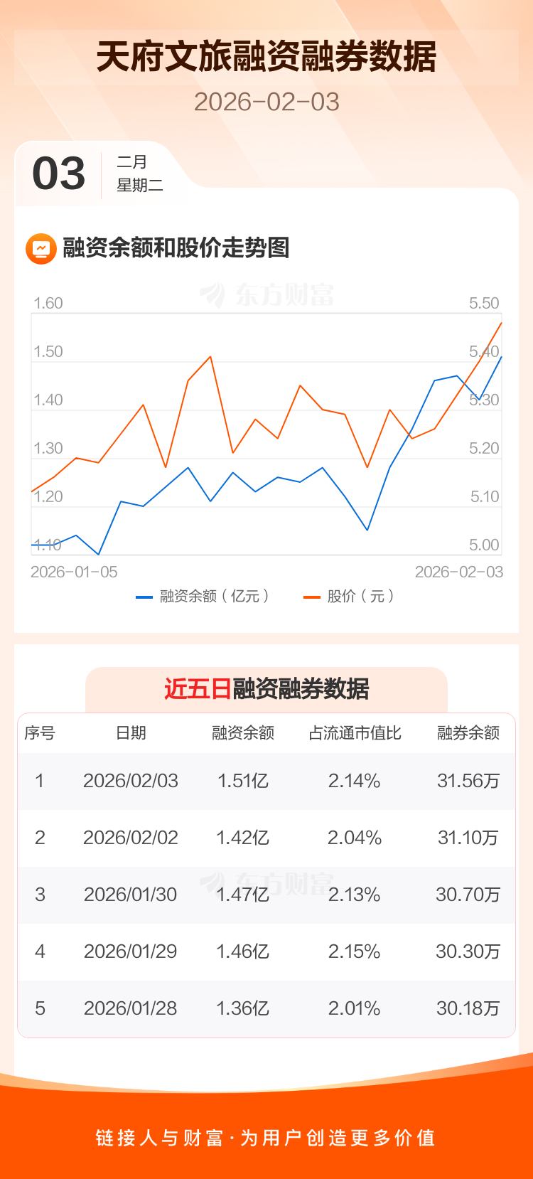 交易所最新数据显示,天府文旅于2026年2月3日获融资买入2588.84万元,融资偿还1641.56万元,当日融资净买入947.27万元。目前,该股融资余额1.51亿,占流通市值比例为2.14%。