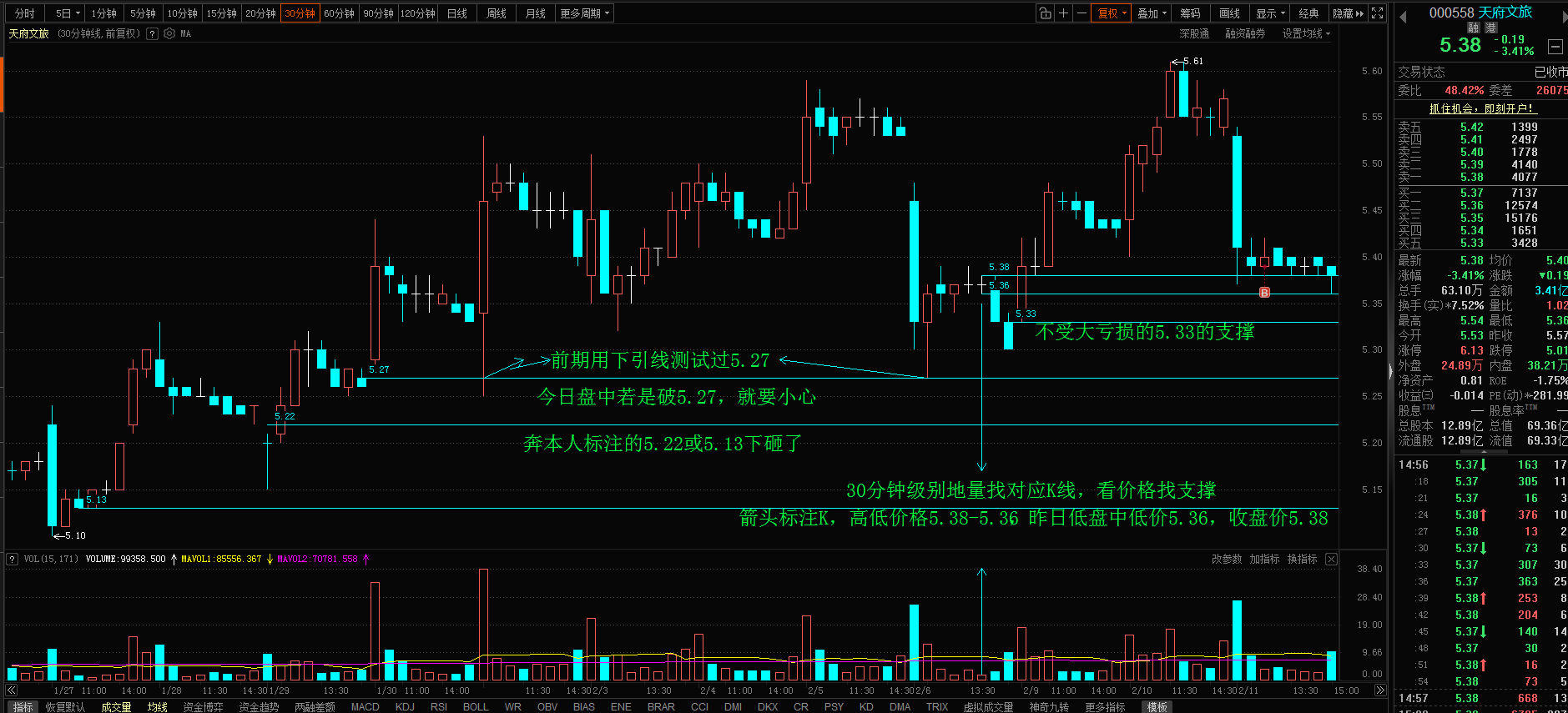 因昨日盘中买入的,在短分钟级别上没有细考虑分析,尾盘结束后,进行了价格复盘,给股友发一个30分钟级别的价格防守点位截图,暂时不考虑涨的事,短分钟级别,还没有出现止跌K的。要看今明两天30分钟级别上给出止跌K线组合的,才会产生日级别的涨势