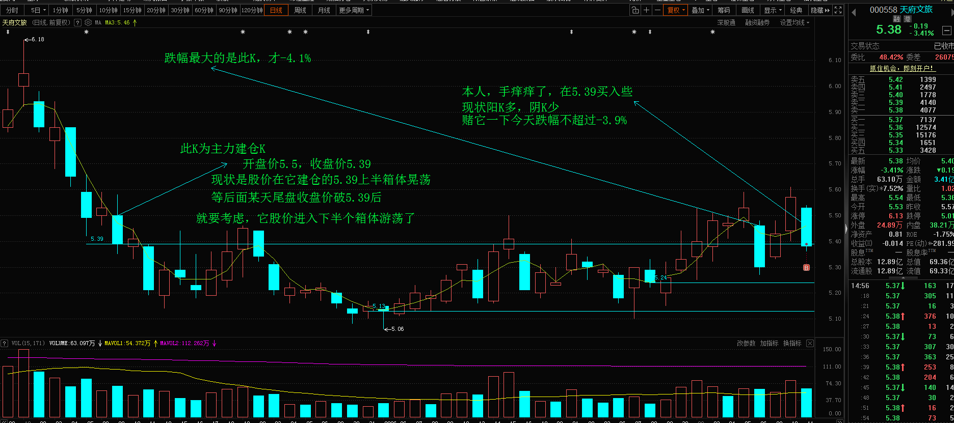今日盘中分时线上的压力就是昨日K线的半分位价格5.45。站稳5.45,或许有些好苗头。
