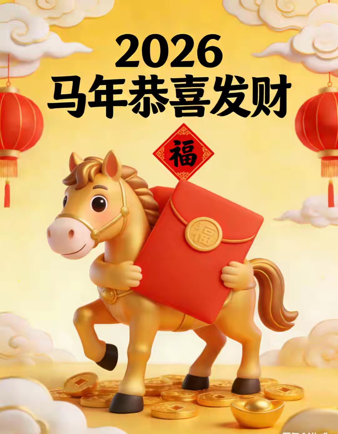 辞旧岁,迎新春,K线全收红;2026丙午年,祝持有的都是龙头,出手的都是高点,牛