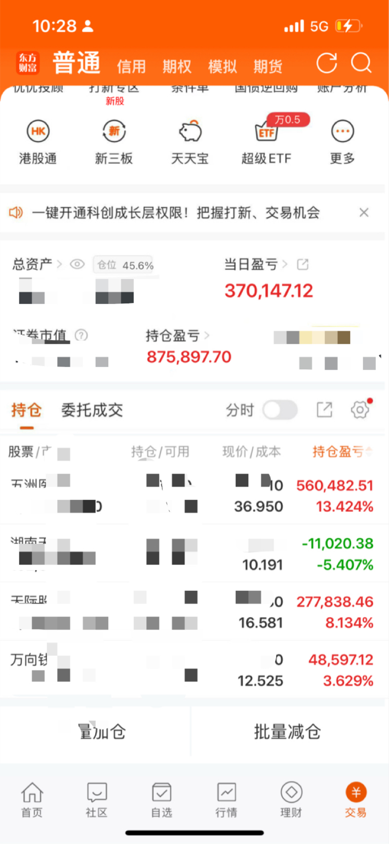 嗨,大家中午好,今日的行情可谓是中规中矩新能源汽车,固态电池板块出现领涨趋势今日介入$万向钱潮(SZ000559)$ 其所属板块内大幅上涨居前,果断追进$天际股份(SZ002759)$ 该标也是持有多日,坚定看多,也算实现扭亏为赢,目前情况一步步走向成熟,接着持有见花开。$五洲医疗(SZ301234)$ 择机出局,先看看吧。