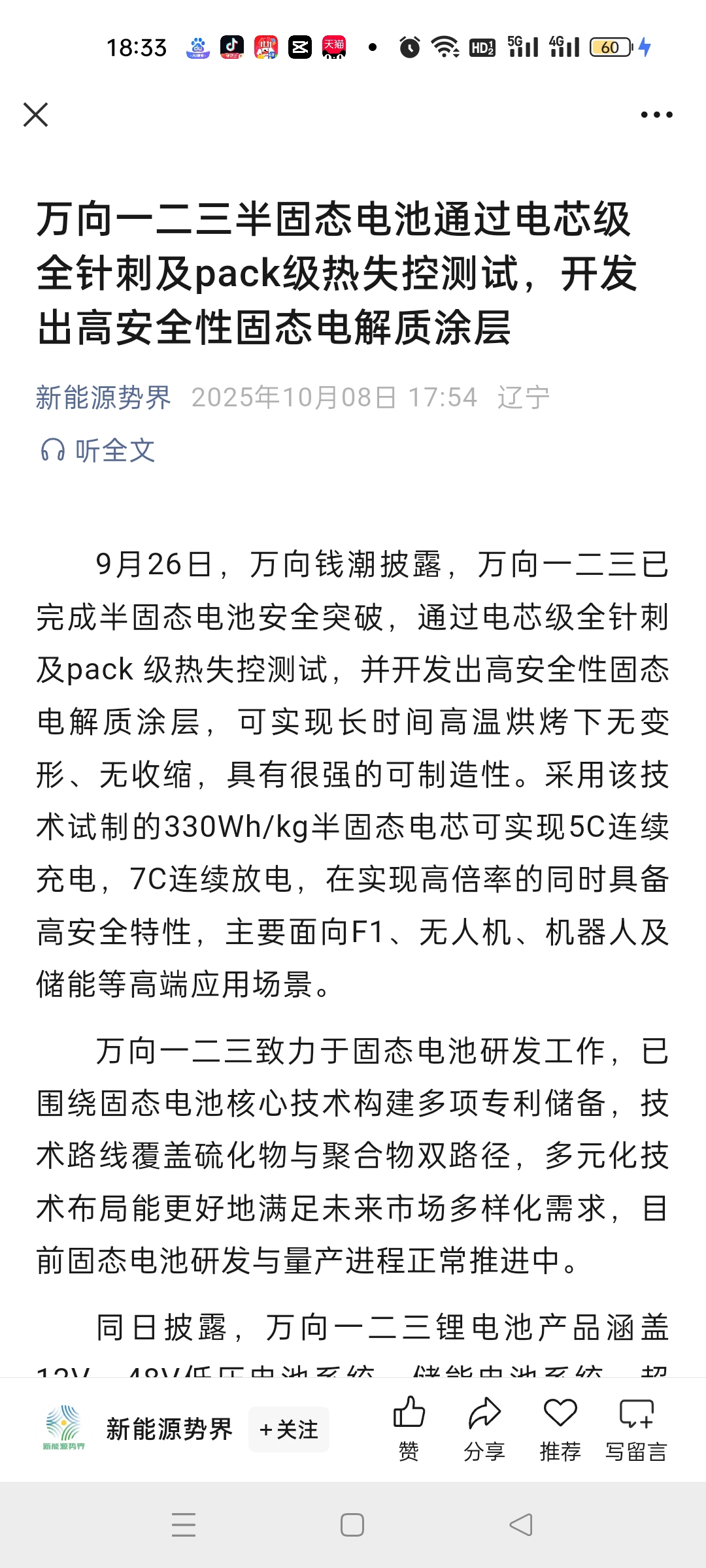 万向一二三固态电池