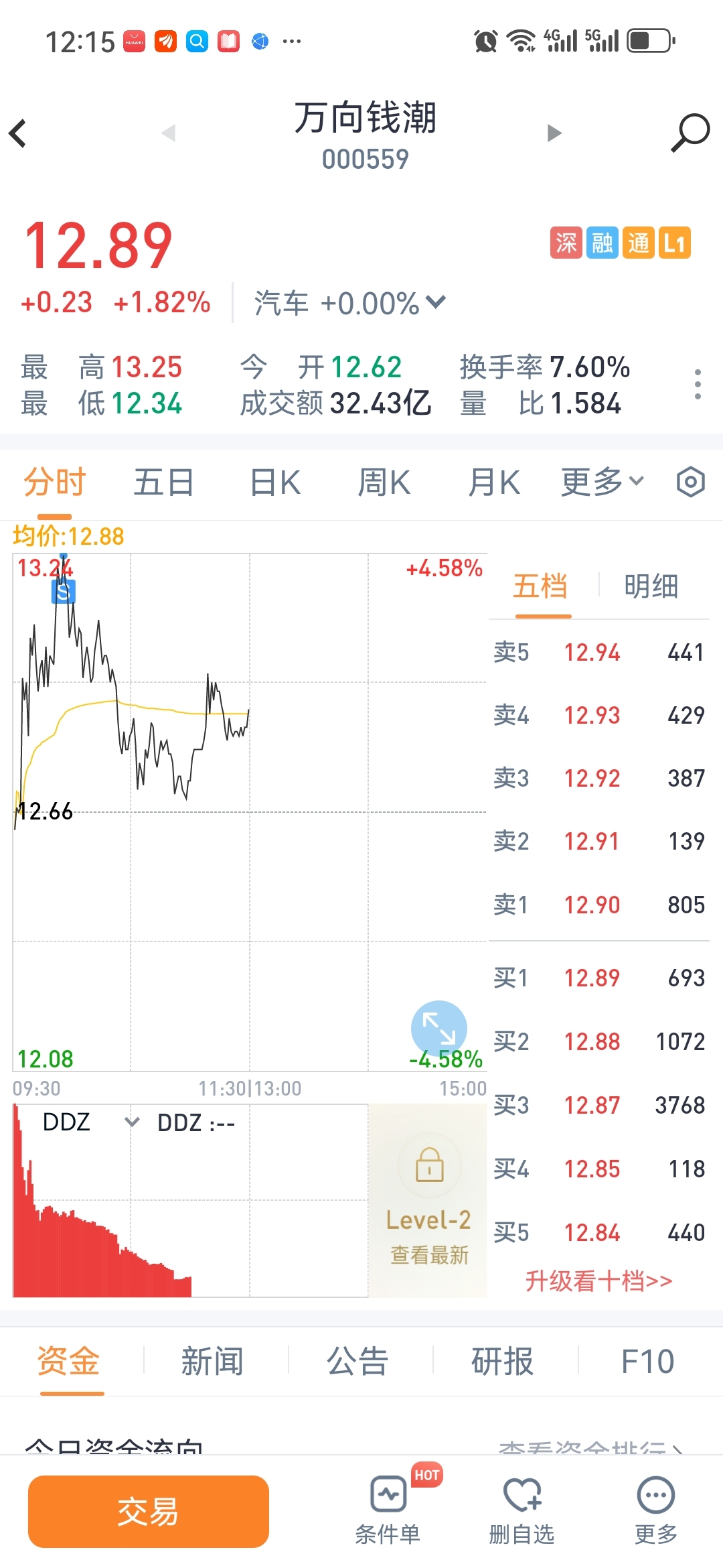 $万向钱潮(SZ000559)$ 跑了,下午跌再接回来