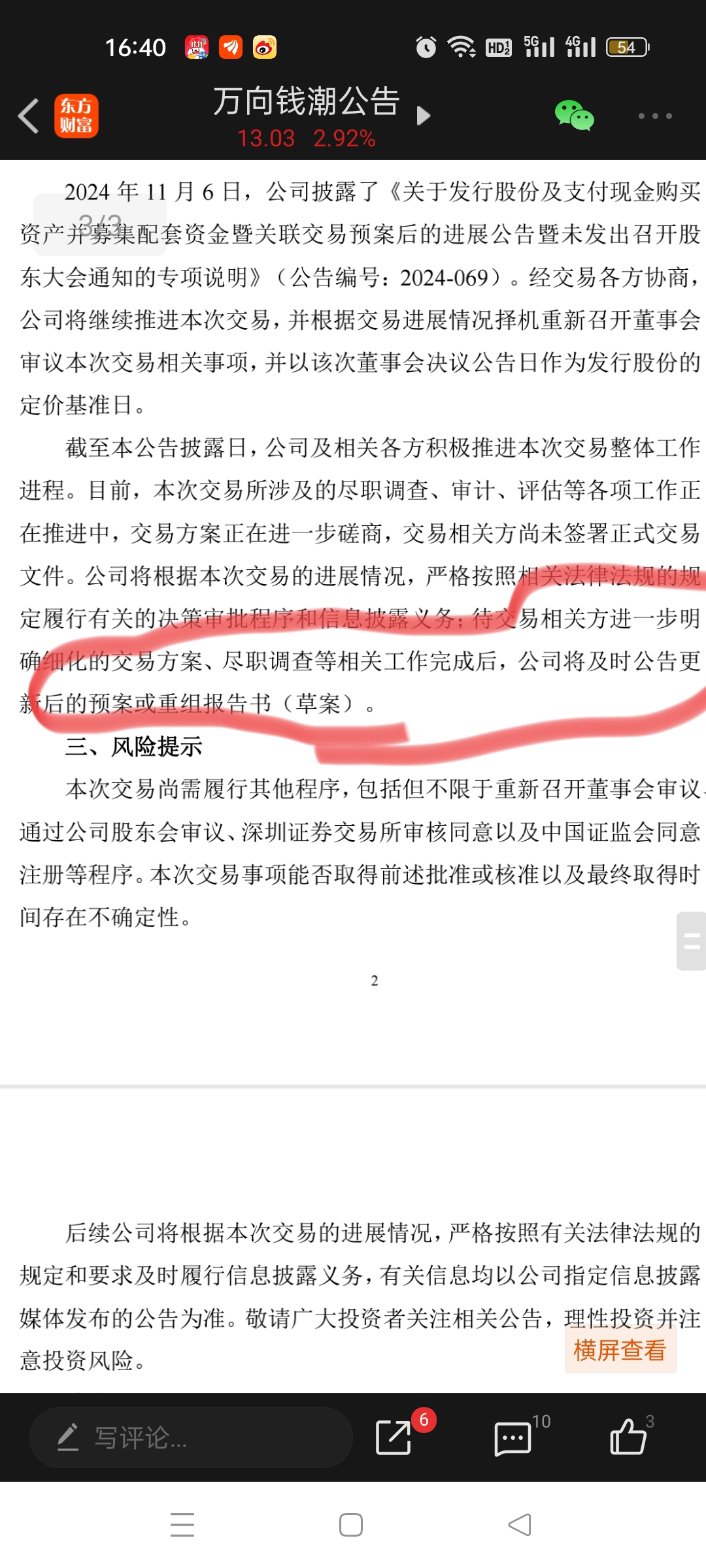 $万向钱潮(SZ000559)$ 万向钱潮重组公告与以上重组公告多了2句话,请注意!!!