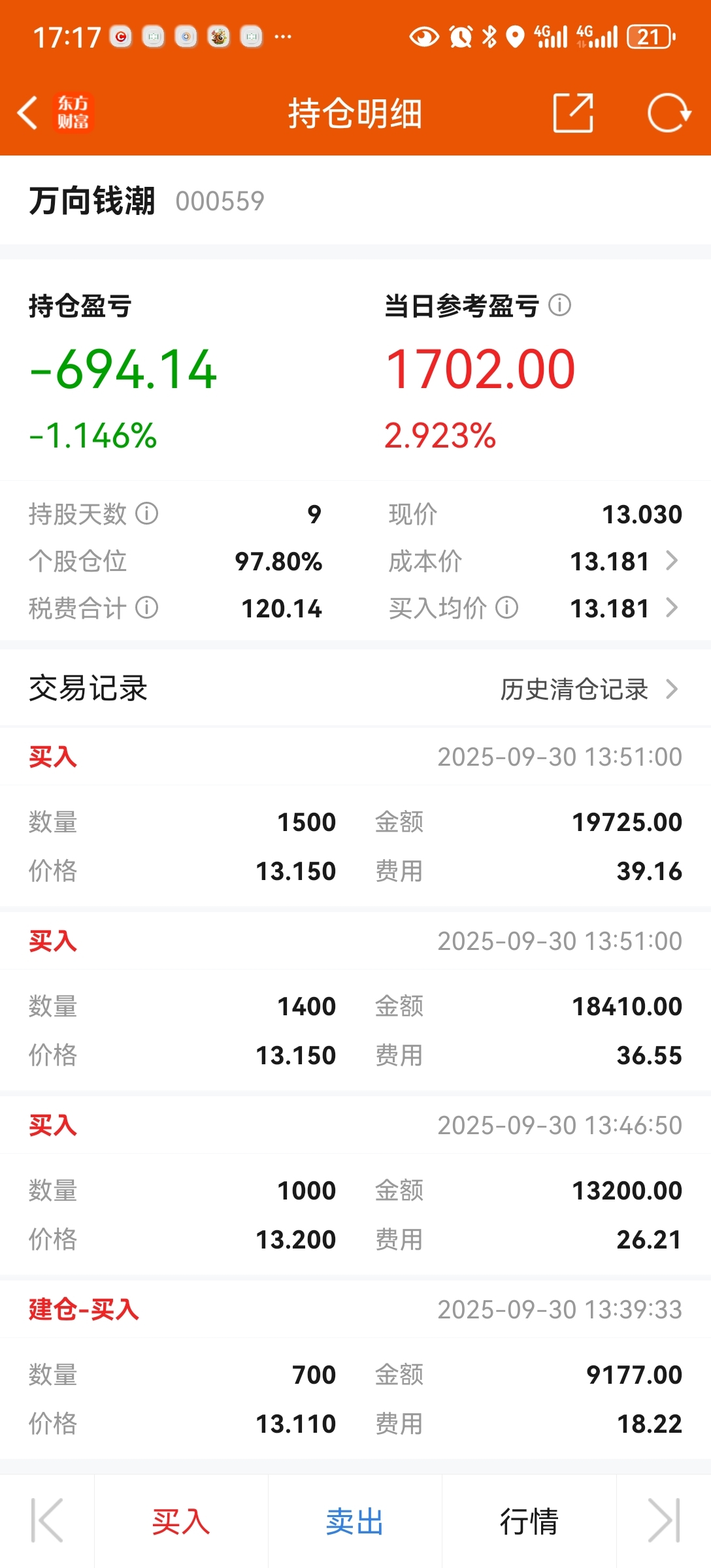 $万向钱潮(SZ000559)$ 明天能不能回本 大哥们