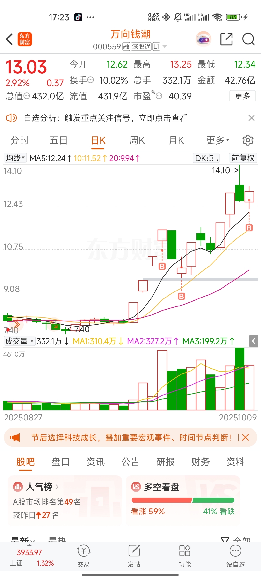 $万向钱潮(SZ000559)$ 有搞头,跟上