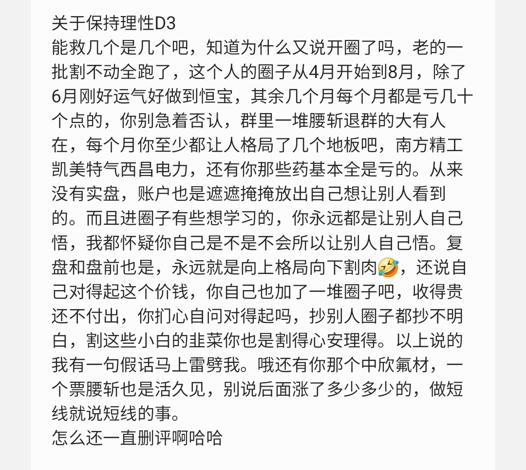 温馨提示: 1.根据《证券法》规定,禁止编造、传播虚假信息或者误导性信息,扰乱证券市场;2.用户在本社区发表的所有资料、言论等仅代表个人观点,与本网站立场无关,不对您构成任何投资建议。用户应基于自己的独立判断,自行决定证券投资并承担相应风险。《东方财富社区管理规定》